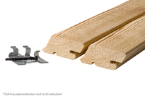 Sichtseite gehobelt, 25° abgeschrägt, Längskante mit TIGA-Nut Fräsung, Rückseite mit Nut für Fixing-Befestigungsclipse.